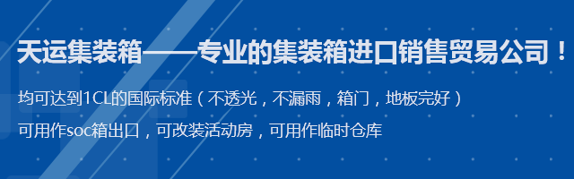符合國際:箱標(biāo)準(zhǔn),可用作倉庫和海運(yùn)及鐵路運(yùn)輸?shù)鹊?!誠信經(jīng)營、數(shù)量充足、價(jià)格優(yōu)惠。公司在中國各大港口(如青島、天津、上海、深圳等均有大批量庫存),在中國香港、韓國、新加坡、東南亞、非洲、歐洲等形成不斷完善的貿(mào)易網(wǎng)絡(luò)。